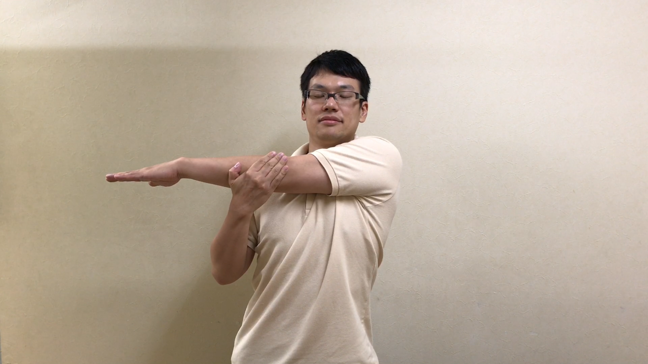 2、肩の後ろ側を伸ばすストレッチ2(スリーパーストレッチ)